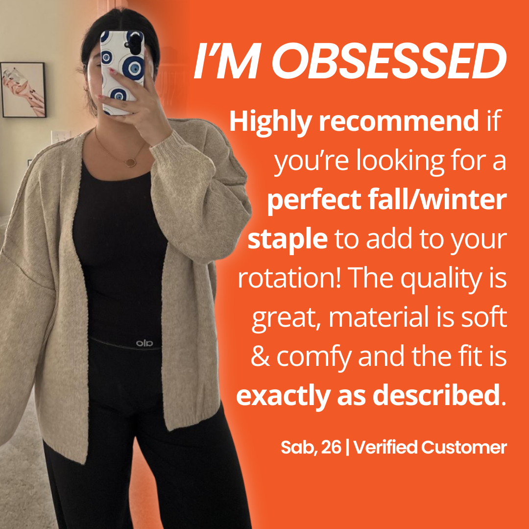 Oversized fit. Cloud-soft knit. The Sunday Cardigan is your new cozy obsession ๐
